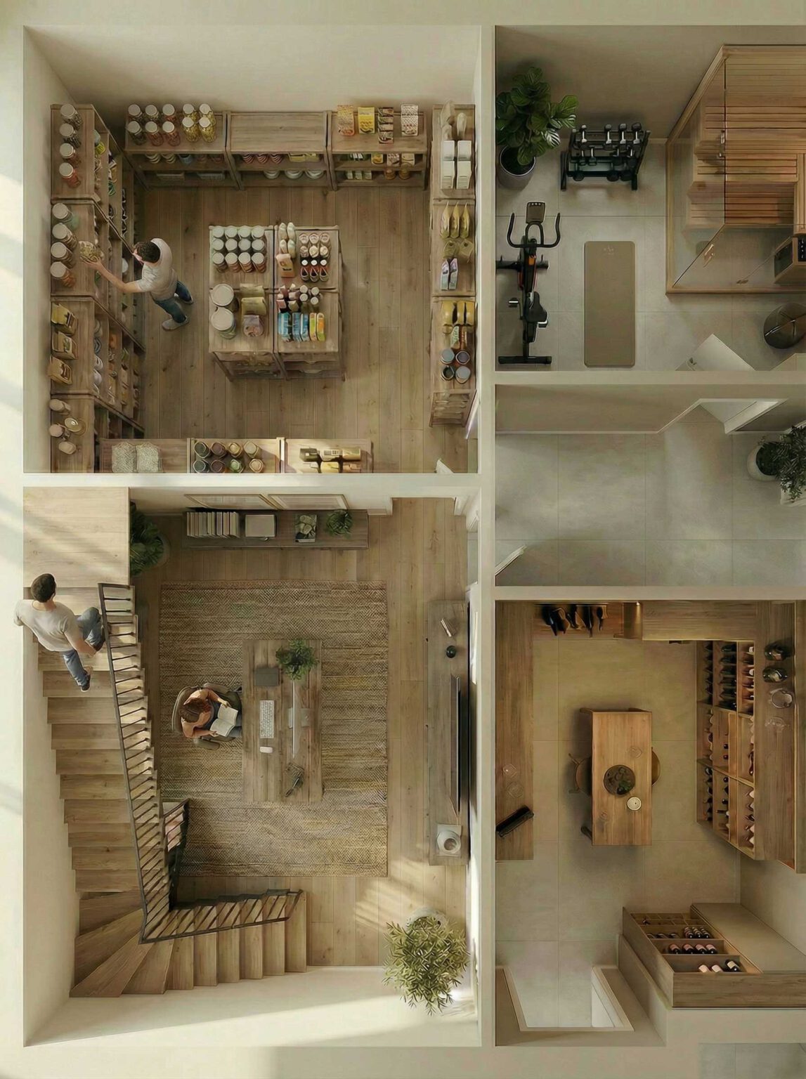Statt einer völligen Vereinheitlichung wurde Wert auf ein harmonisches Zusammenspiel aus Bewährtem und Neuem gelegt: Gepflegte Bestandsböden in ausgewählten Bereichen bleiben erhalten,um den warmen, wohnlichen Charakter zu bewahren.